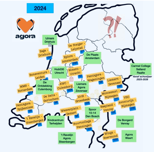 Het gaat heel goed met de Agora beweging in Nederland. Er zijn 23 Agora scholen in Nederland en met ingang van het schooljaar 2026-2027 komen er 11 bij.