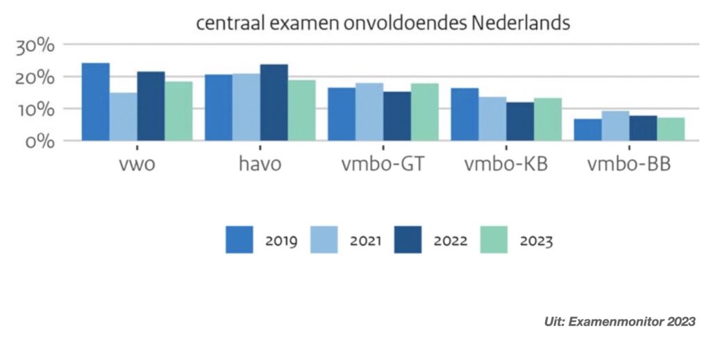 Kijken we naar het einde van de middelbare school dan is dit het beeld voor het vak Nederlands: